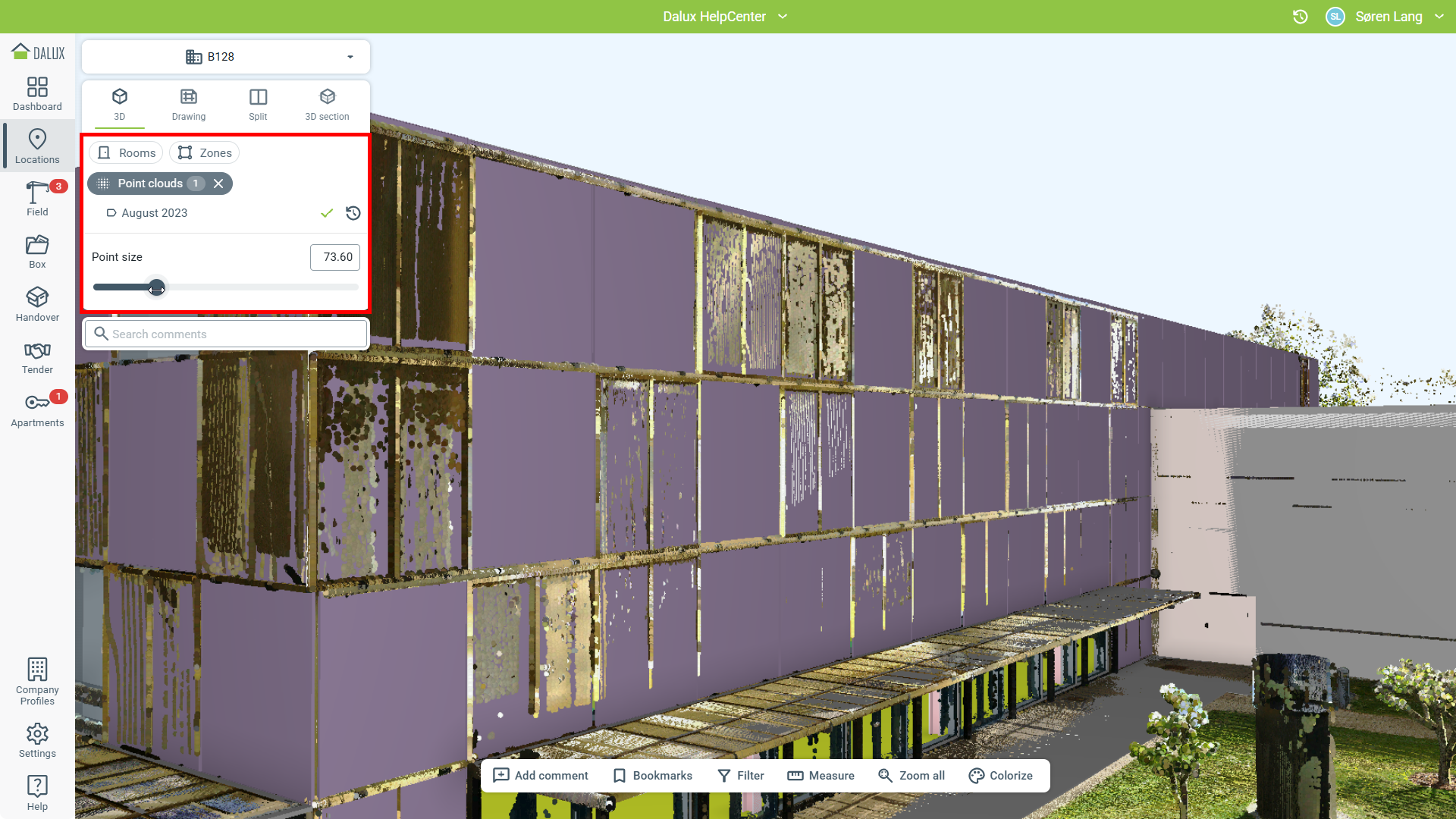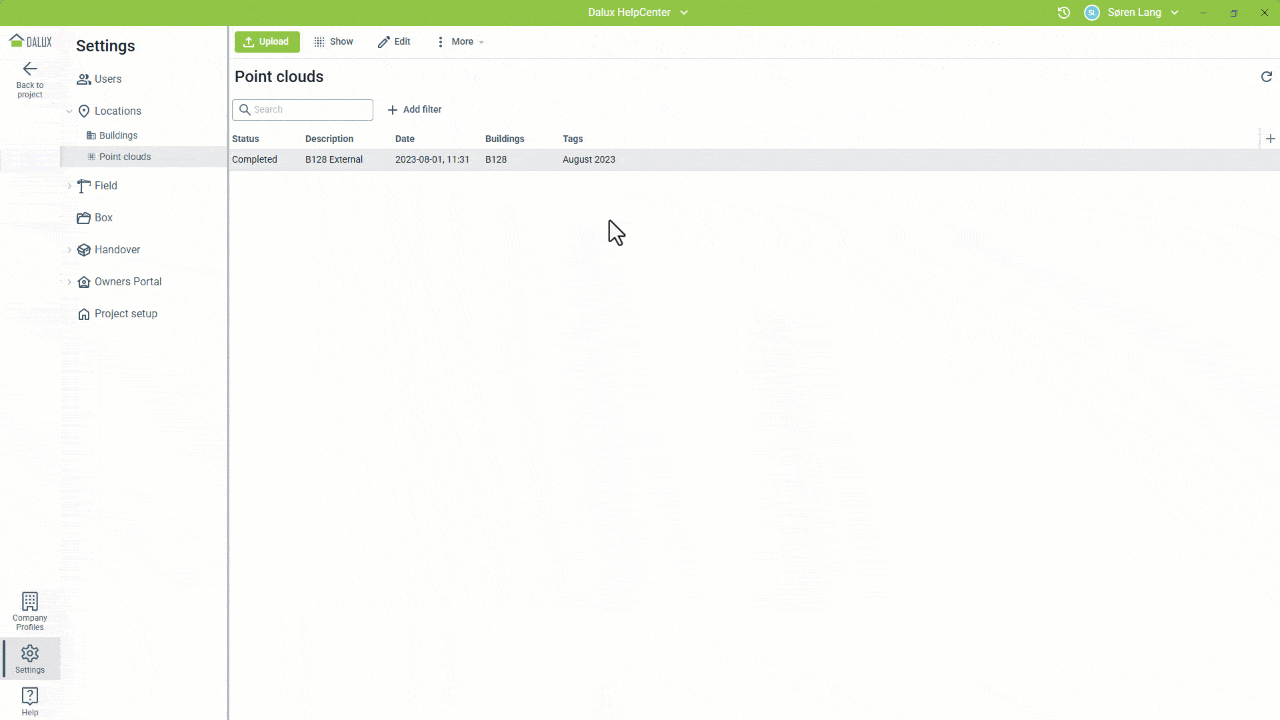 V tomto článku se dozvíte, jak nahrávat, spravovat a zobrazovat "mračna bodů" nahraná do systému Dalux.