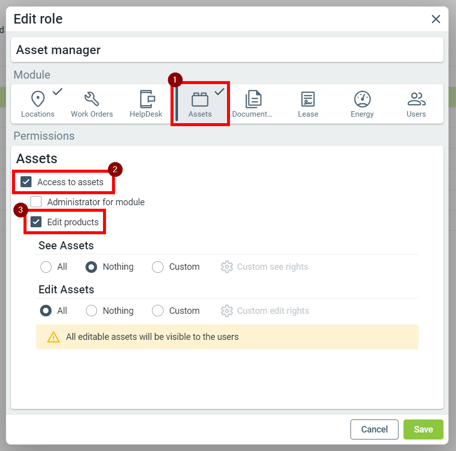 The user role needs to have these settings to be able to create and edit products: