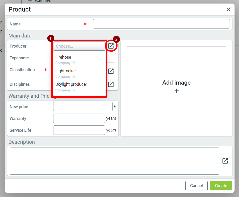 When selecting a producer, you can choose from the list of companies added to the FM instance. If you type in the name of a producer that doesn't exist in the instance, you will be asked if you'd like to create a new company.