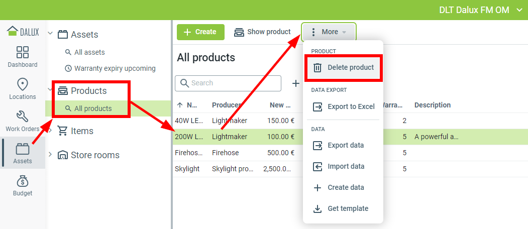 Delete product: