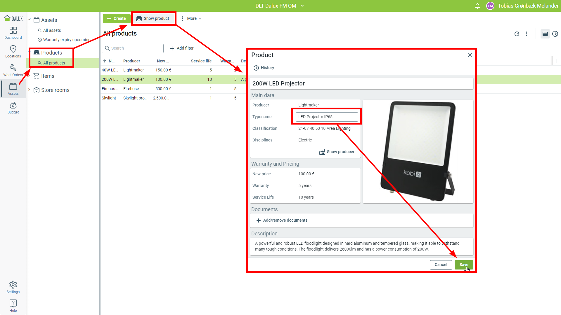 To edit a product, go to