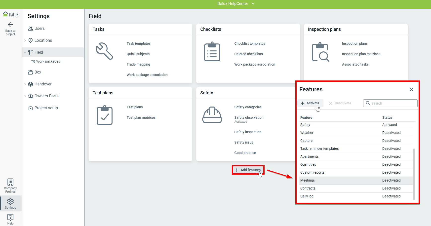 Koosolekute funktsioon on saadaval nii Fieldis kui ka Boxis ning seda saab kasutada mõlemast moodulist. Kui teil on projektis nii Field kui ka Box, jagatakse koosolekud moodulite vahel.