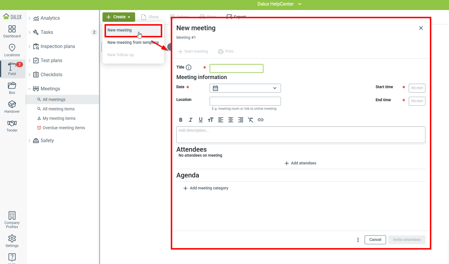 Kui teil ei ole projektis Dalux Field'i, vajate koosolekute kasutamiseks Dalux Box Pro-d.