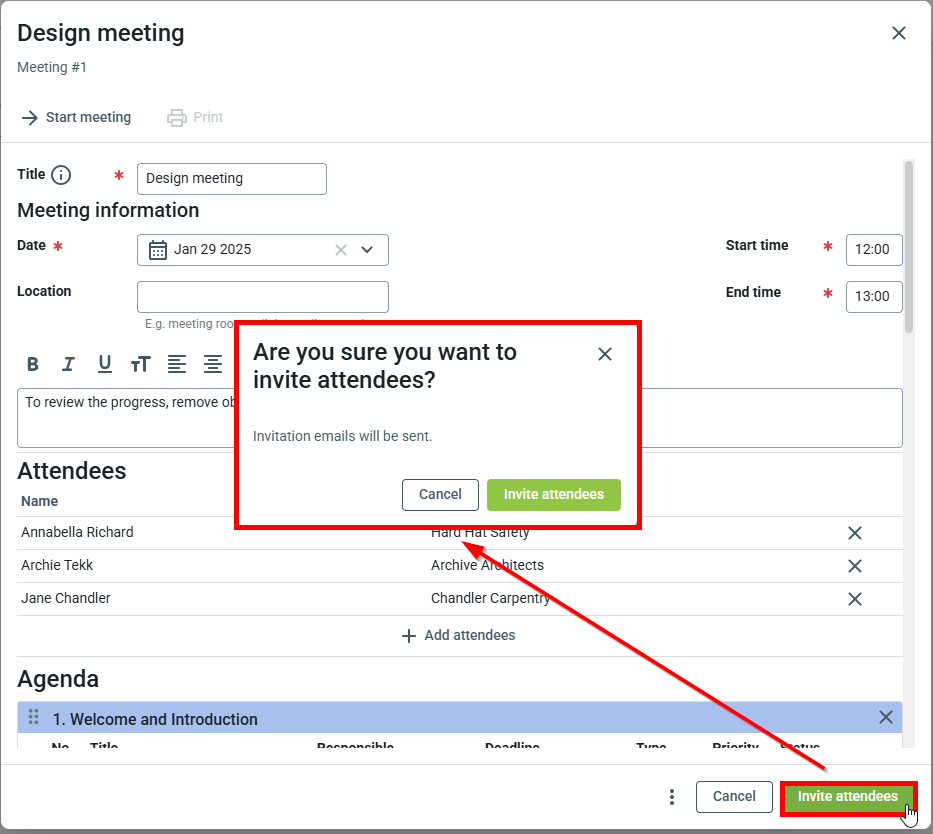 Kui koosoleku teave on täidetud, alustage osalejate kutsumist: