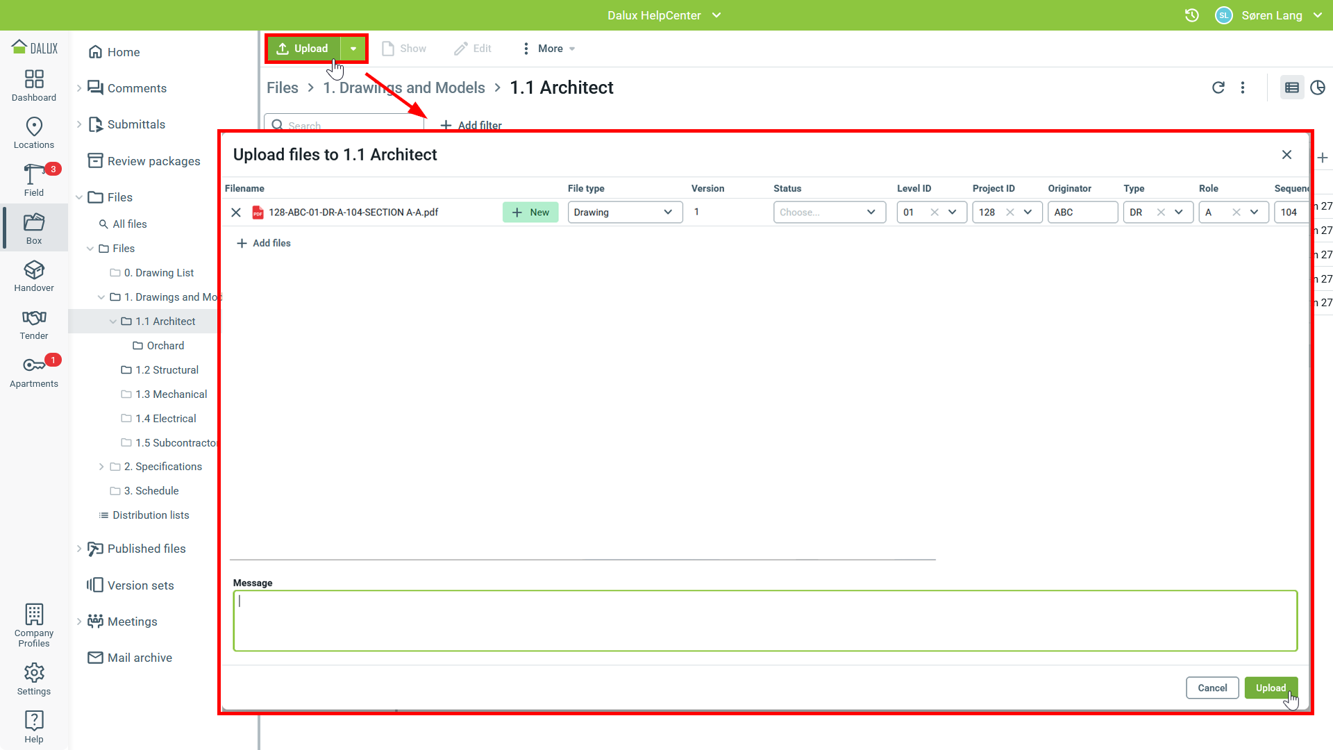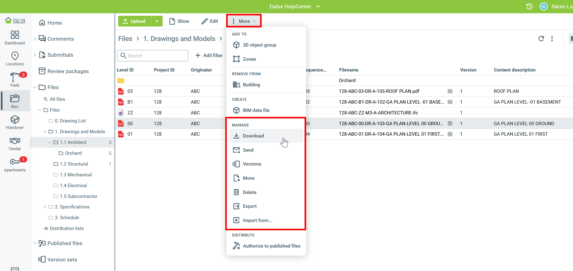 Se vuoi saperne di più sull'utilizzo di Dalux Sync per caricare file, puoi leggere questo articolo: Sincronizza file tra Dalux Box e il tuo PC con Dalux Sync.