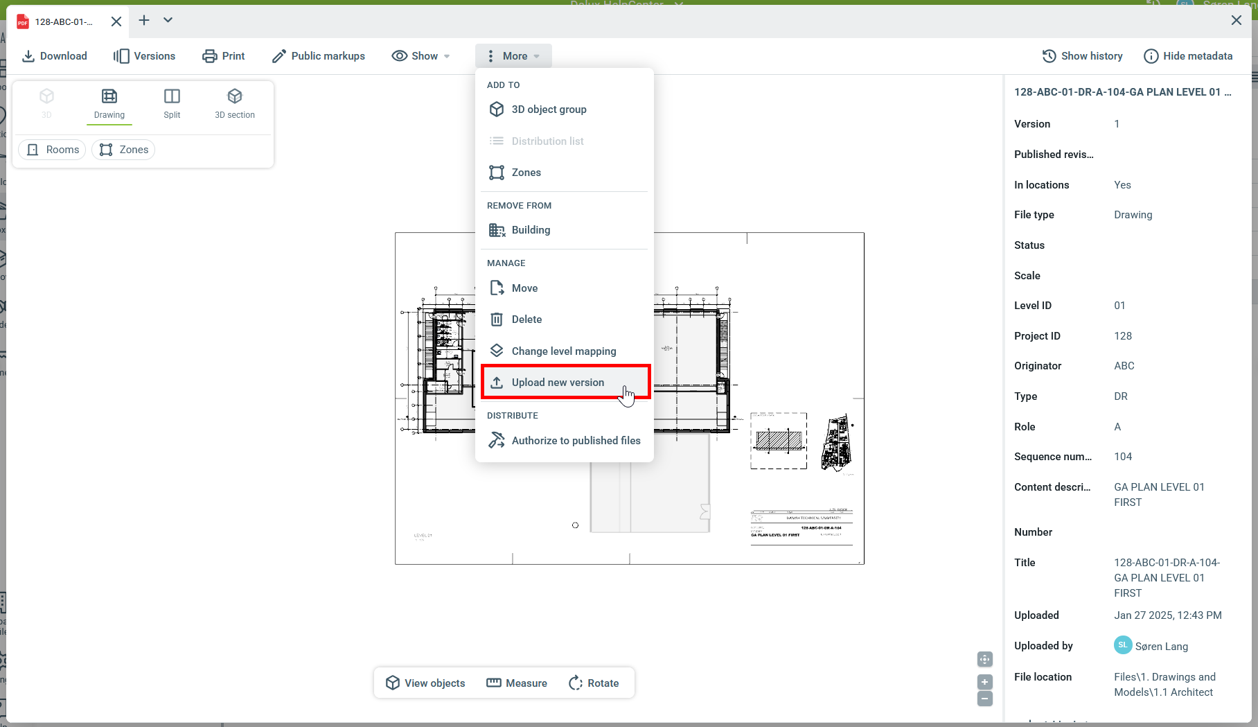 Quando si caricano file su Dalux Box con un nome di file identico a quello di un file esistente, Dalux crea automaticamente una nuova versione del file, mantenendo la vecchia.