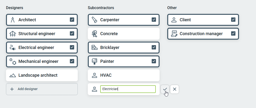 Aggiungere subcontractor per aggiungere i tuoi gruppi. Denomina il gruppo e fai clic su
