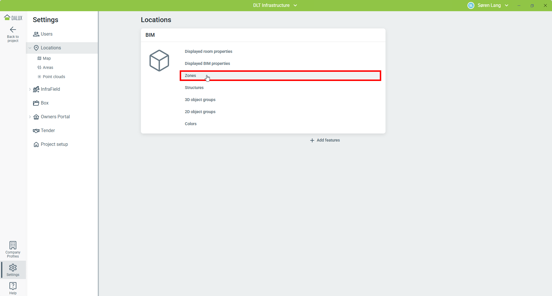 Aby utworzyć strefy w projekcie, przejdź do Ustawienia