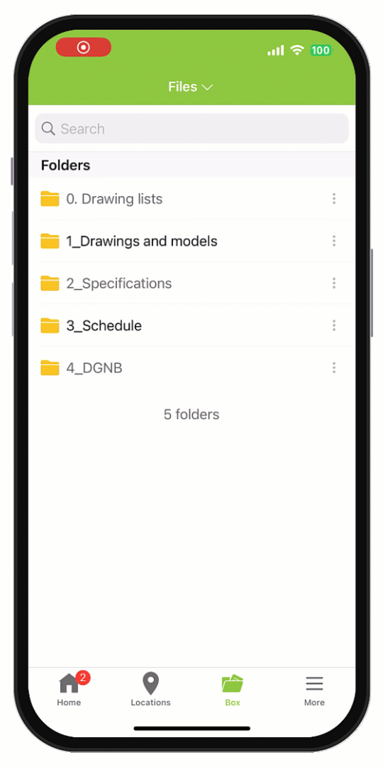 W Box wszystkie dokumenty projektu są zorganizowane w folderach i podfolderach. Dostęp do tych folderów jest ograniczony na podstawie grupy użytkownika, więc nie wszyscy uczestnicy projektu mają dostęp do tych samych plików.