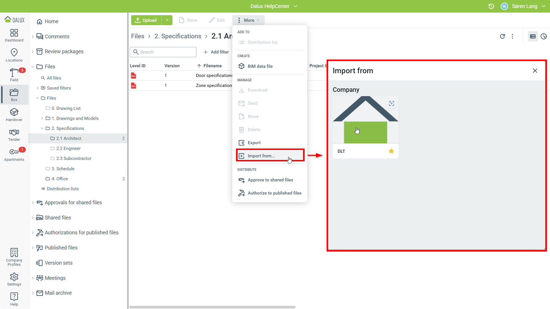 Den här artikeln handlar om inställningarna för Box-biblioteket i företagsprofilen i Dalux.