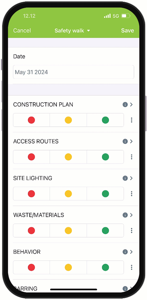 Med skyddsrondsfunktionen kan säkerhetsansvarig snabbt fånga upp säkerhetsfrågor och kommunicera eventuella avvikelser till projektets deltagare för åtgärd.