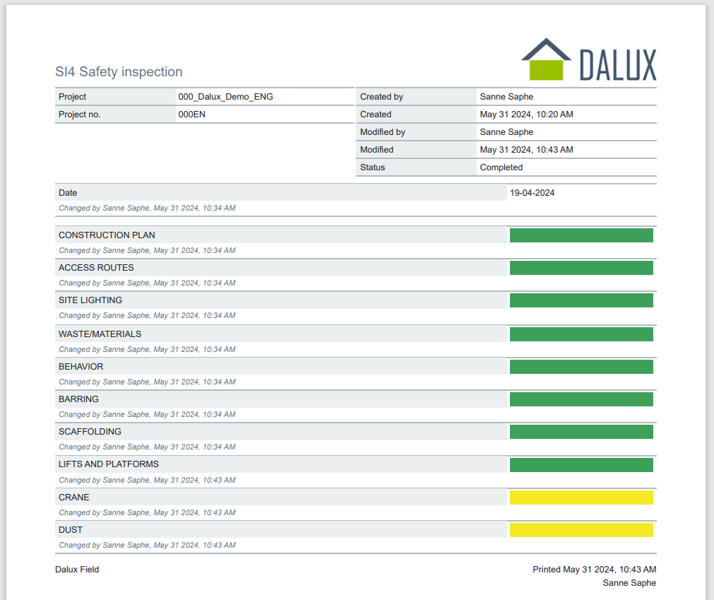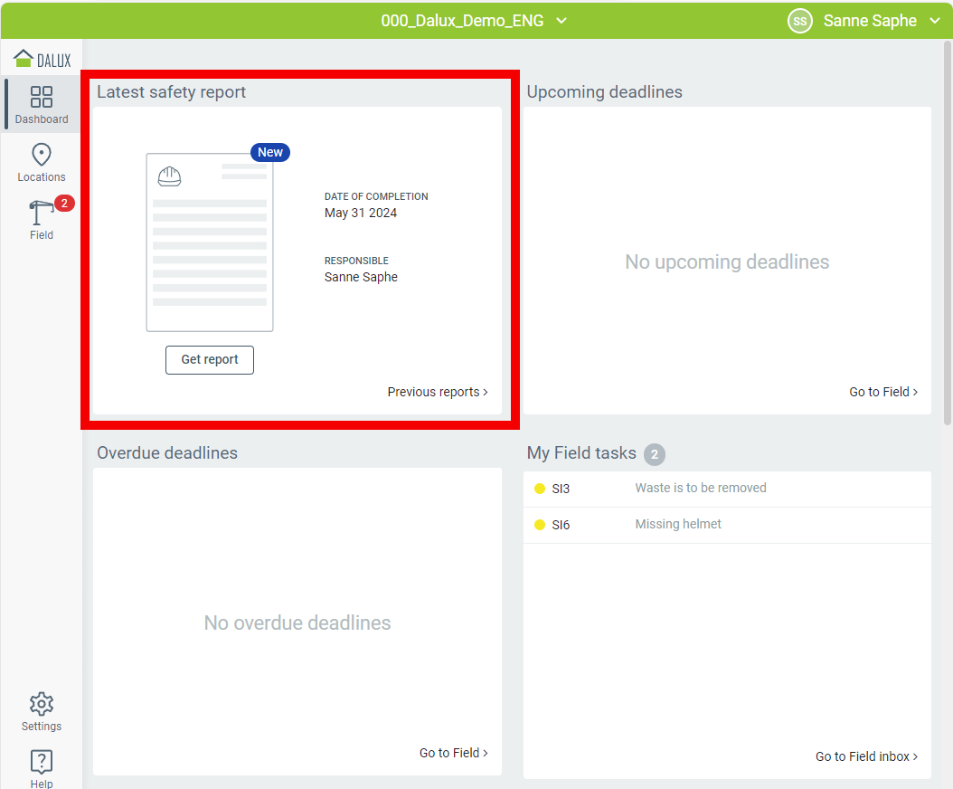 Färdigrapporterade skyddsronder är tillgängliga på instrumentpanelen för alla projektmedlemmar att ladda ner så snart de är klara, vilket säkerställer att alla kan följa arbetsmiljöarbetet på plats.